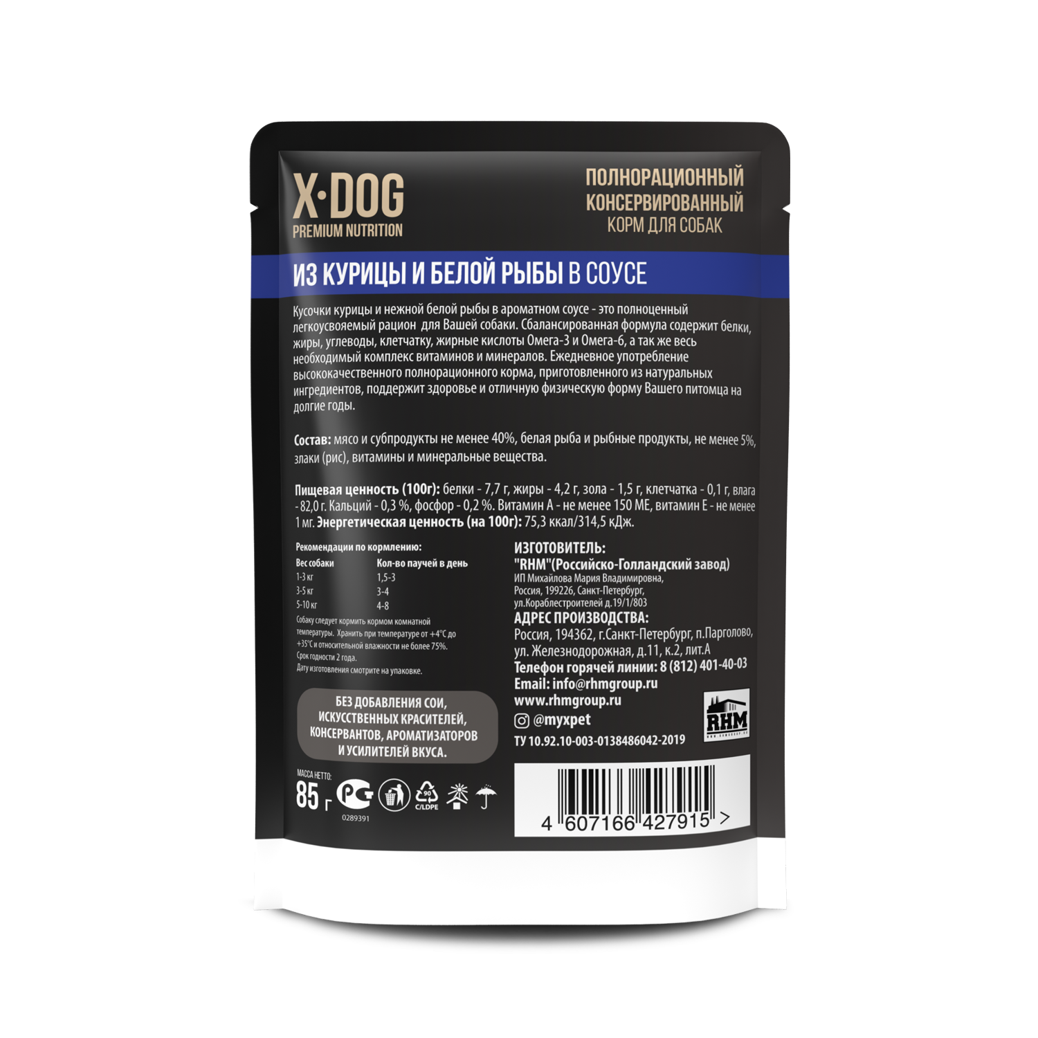 Кусочки курицы и нежной белой рыбы в ароматном соусе — это полноценный легкоусвояемый рацион для вашей собаки. Сбалансированная формула содержит белки, жиры, углеводы, клетчатку, жирные кислоты Омега-3 и Омега-6, а также весь необходимый комплекс витаминов и минералов. Ежедневное употребление высококачественного полнорационного корма, приготовленного из натуральных ингредиентов, поддержит здоровье и отличную физическую форму вашего питомца на долгие годы.